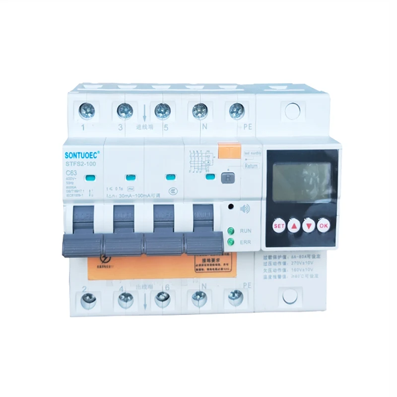 STSF2-100 100A 2P 4P multifunktsionaalne RCBO sobib vahelduvvoolu 50/60Hz jaoks, mille pinge on 230 V-400 V ja nimivool 100A, kui Apperson on elektrilöök või toitevõrk lekked. Kui leke, ülepinge ja alapinge ulatuvad komplekti väärtusteni, saab jääkvoolu kaitselüliti kiiresti töötada väga lühikese aja jooksul toiteallika kiiresti. Kui jääkvoolu kaitselüliti seiretemperatuur jõuab komplekti väärtuseni, pole seiretraadist ühendatud. Ühendamisel eraldab toode personali ja elektriseadmete ohutuse kaitsmiseks häireheli ning saab vältida Vältige toitevõrgu ülepinge põhjustatud seadmete kahjustusi. Tal on ülekoormust, lühise, leket, ülepinge alapinget ja ületemperatuuri kaitsefunktsioone saab tavaolukorras vahelduvalt sisse ja välja lülitada elektriseadmetes vahelduvalt sisse ja välja Valgustusahelad, mis sobivad eriti tööstuslike ja kaubanduslike valgustuse jaotussüsteemide jaoks. Tootel on väike maht, kompaktne struktuur ja parem kulutõhusus kui teistel sarnastel toodetel. Sellel on ilus välimus, Suur purunemisvõime muudab selle majapidamise energiajaotuseks heaks valikuks. See toode vastab GB/T 16917.1 ja IEC 61009-1 standarditele ning on saanud CE sertifikaadi.