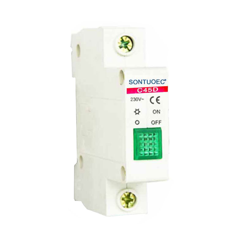 C45D -seeria moodul, mis näitab valgust, mis on rakendatav visuaalse näidustuse ja signaalimise jaoks vooluringiga ja sagedusega 50/60Hz.